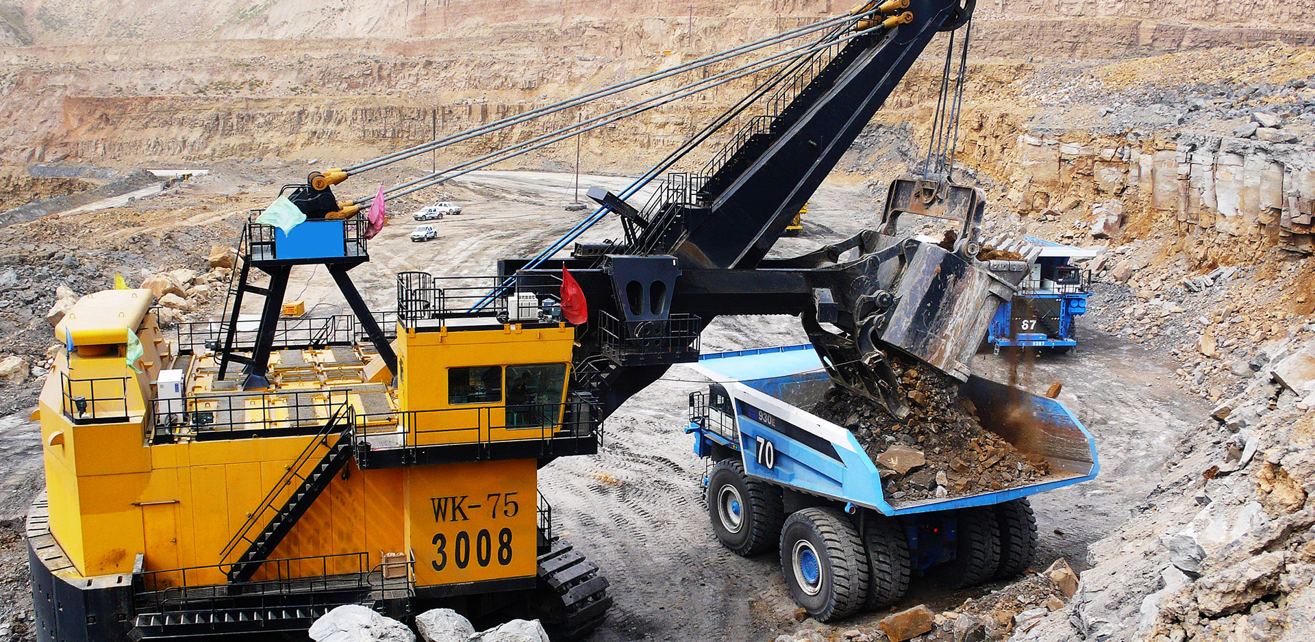乐鱼在线注册_乐鱼(中国)是矿山设备的专业化制造基地,已生产矿用机械挖掘机1400余台,标准斗容4m³~75m³,还提供各种液压挖掘机、半移动破碎站、自移式破碎站、排土机和卸料车、履带运输车、带式输送机等成套设备,产品广泛应用于各种大型露天煤矿、铁矿及有色金属矿的剥离、采装、运输等作业。