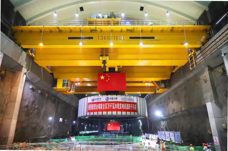 8月18日,三峡集团白鹤滩水电站左岸1号机组转子在太重生产的两台1300吨桥机并车抬吊牵引下缓缓上升,拉开了世界首台单机容量100万千瓦水轮发电机组转子吊装的序幕。经过约300米的水平移动后,转子安全平稳落入1号机组机坑,实现了与发电机轴的精准对接。该转子外圆直径约16.2米,最大高度约4.1米,起吊重量达2100吨,是机组安装过程中重量最大的核心部件。为了转子等重要设备安装、起吊过程的安全、稳定,三峡集团选择了长期合...